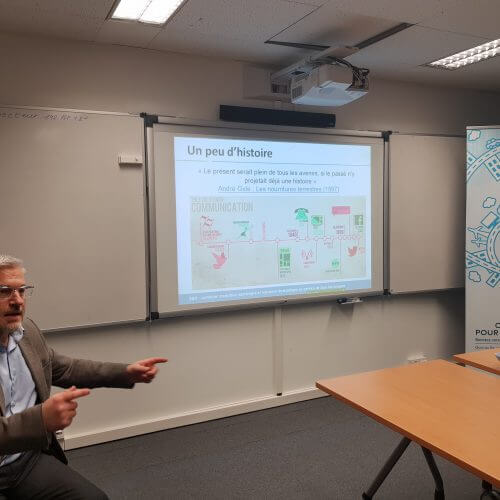 Nach einer ersten Vorstellungsrunde, damit sich jeder Teilnehmer vorstellen konnte, gab uns **Thierry Colignon **einen historischen Überblick über die Interoperabilität, erklärte uns den Ansatz der drei "Schichten" (Cloud, Gebäudeinfrastruktur, Geräte), die Bedeutung, den Nutzer in den Mittelpunkt zu stellen, das verantwortungsvolle Management und die digitale Sicherheit und gab uns einen Überblick über die bestehenden Netzwerke und Kommunikationsprotokolle, die in vernetzten Objekten und im Bauwesen verwendet werden, und wie sie die Umsetzung bestehender Lösungen ermöglichen. Abschließend teilte Thierry mit uns seine Vision von Interoperabilität.